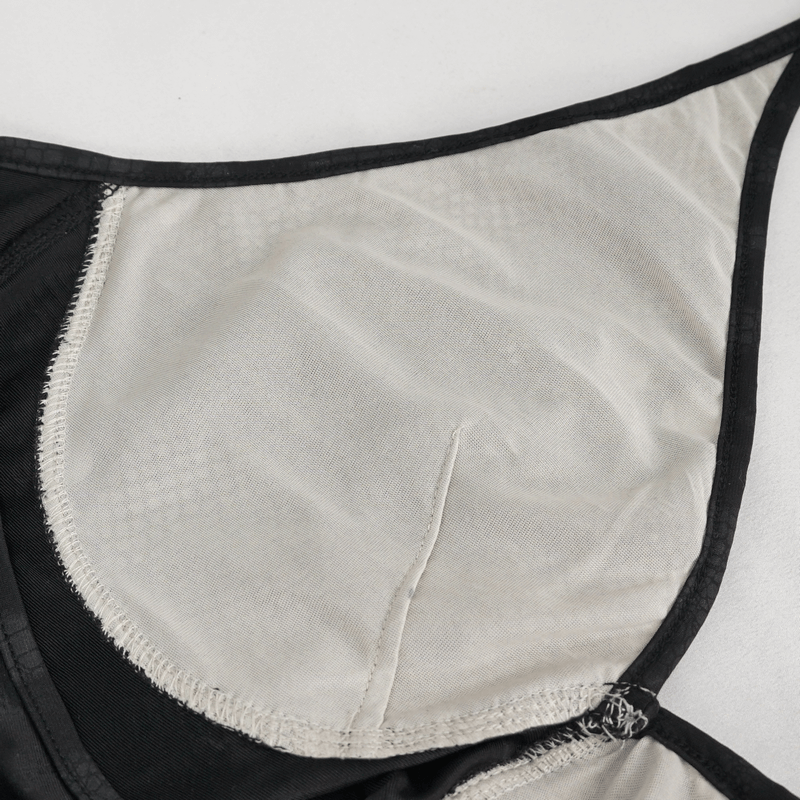 Dive into your unique style with our black gothic one-piece swimsuit. This alternative cloth combines an audacious gothic aesthetic with practical beachwear, featuring distinctive metal loops for an edgy twist. Its sleek black design contours your figure, promoting both comfort and a striking appearance. Whether you're sunbathing or swimming, express your alternative taste in fashion with this attention-grabbing gothic swimsuit.