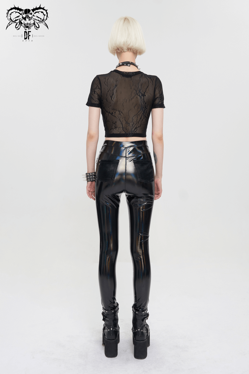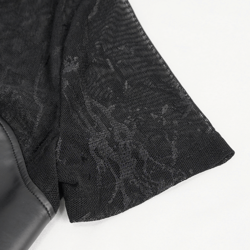 Black Sexy PU Leather Bustier Crop Top For Women / Punk Short Sleevees Top
