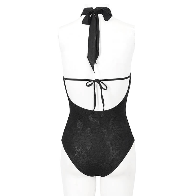 Women's Black Vintage Gothic Swimsuit - Edgy Elegance For The Sun-Kissed Soul.