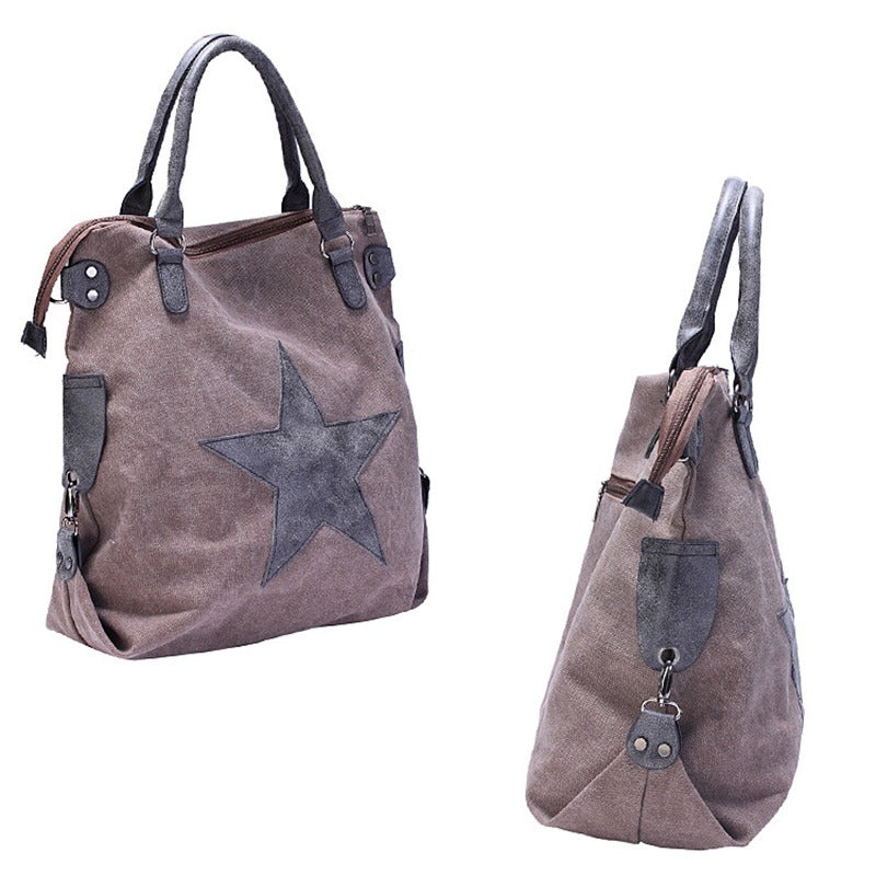 Canvas Women Shoulder Bag with Star on Front / Large Capacity Matte Leather Vintage Style Women Bag