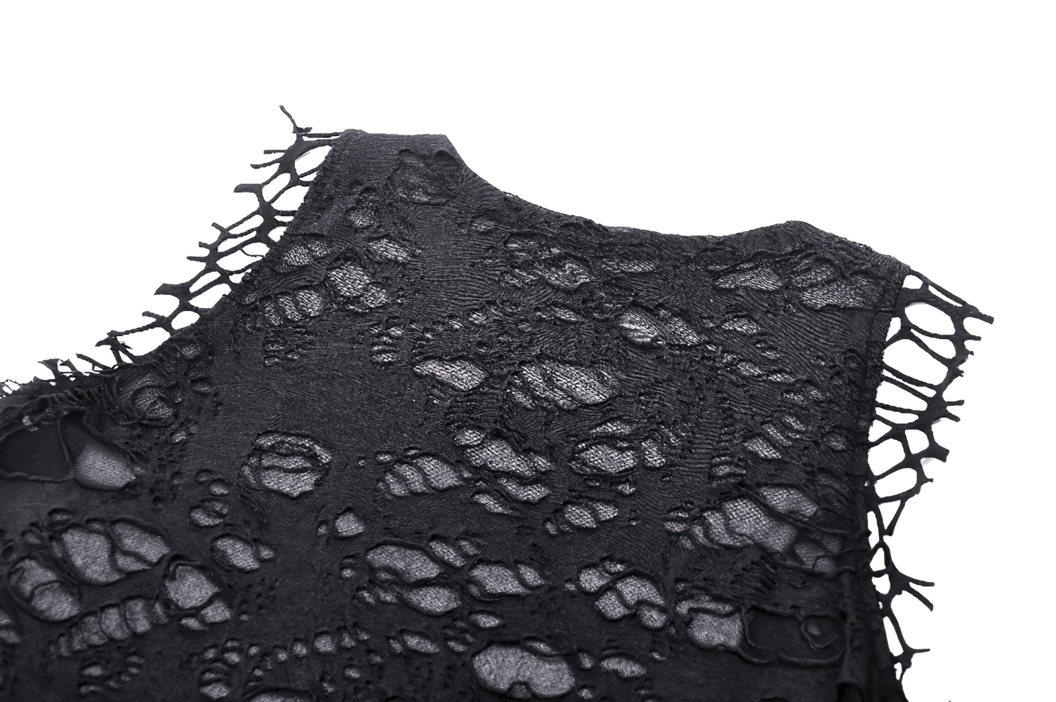 Gothic Sleeveless Shredded Top with Ripped Net and Graphic