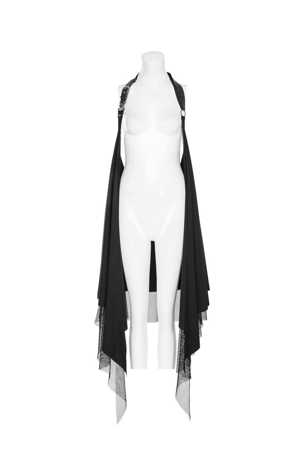 Edgy Black Asymmetrical Lace-Trim Cape for Women