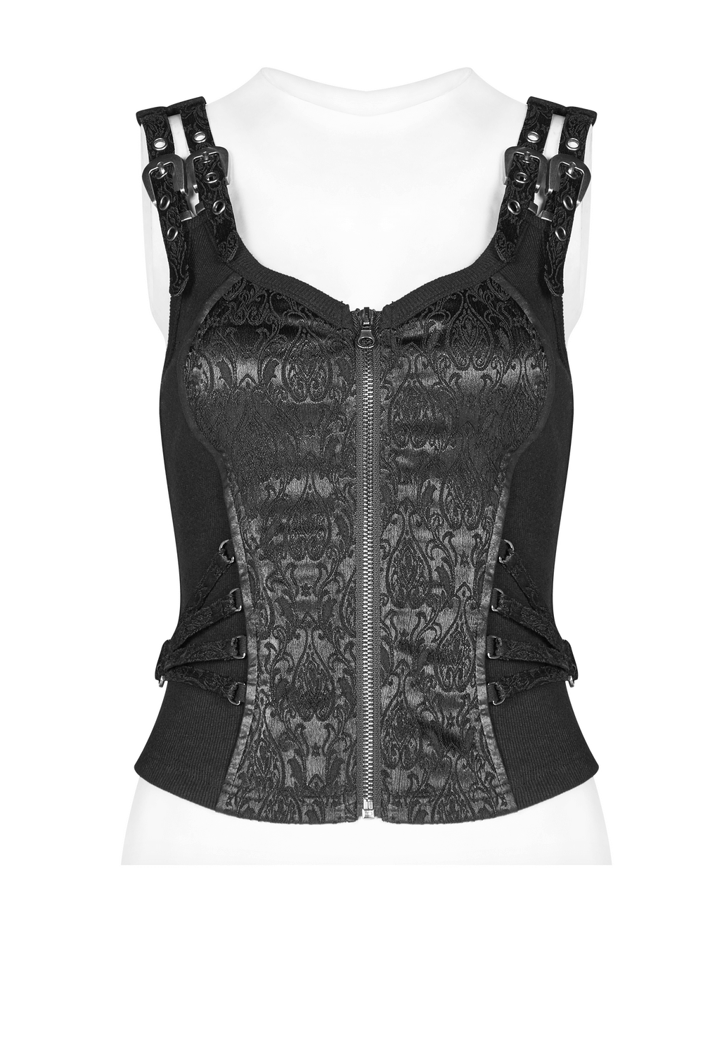 Elegant Steampunk Jacquard Waistcoat with Zipper