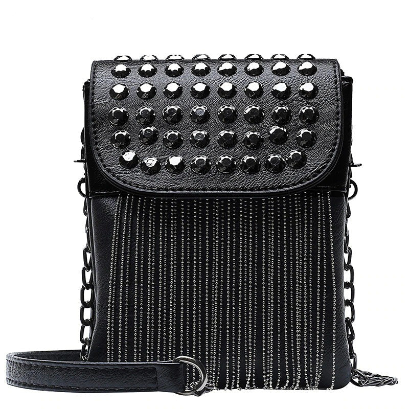 Dangle through your days with this cool shoulder bag! Chains all over create a cool fierce look, especially when you're walking down the street - their movements are striking and make you look powerful even when simply walking. Made of PU leather, it has pockets and a handle for comfortable use.