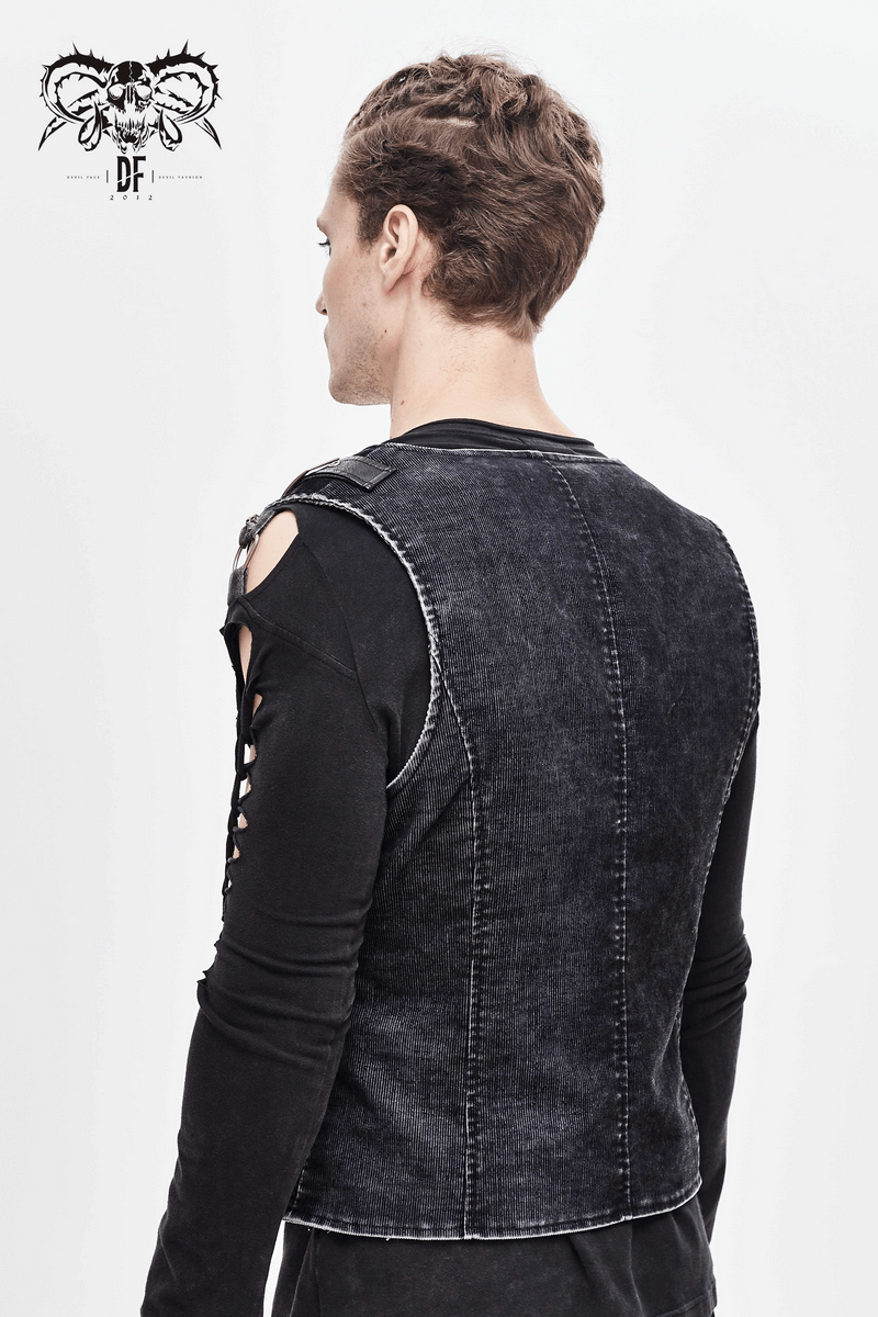 Faux Leather Waistcoats With Pockets / Punk Style Vest with Buckles / Vintage Vest for Men