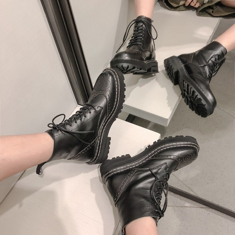 Genuine Leather Women's Boots - Biker Fashion.