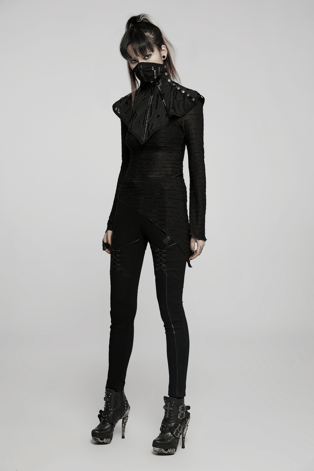 Goth Stylish Face Mask Collar with Buttons and Holes