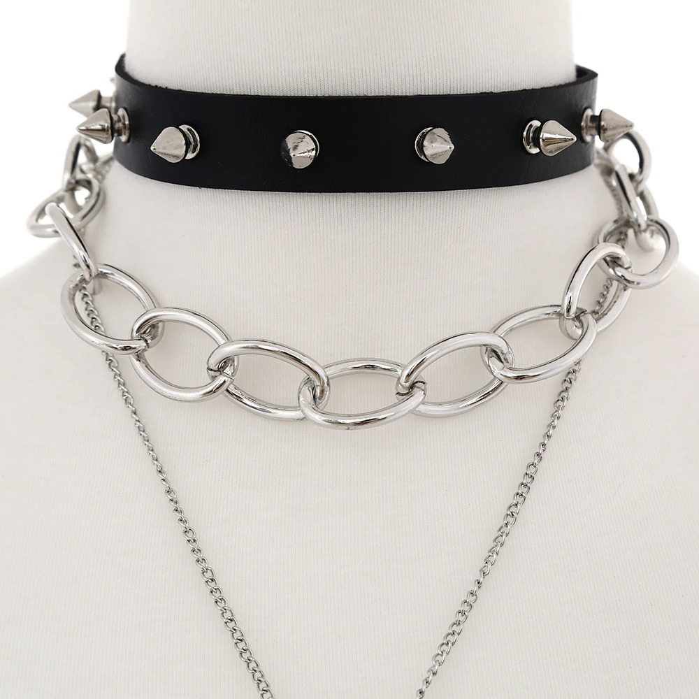 This layered necklace made of zinc alloy belongs to the link chain type and it'll fit you just right! Alternate it with various casual and rock outfits and have fun in your experiments with it.