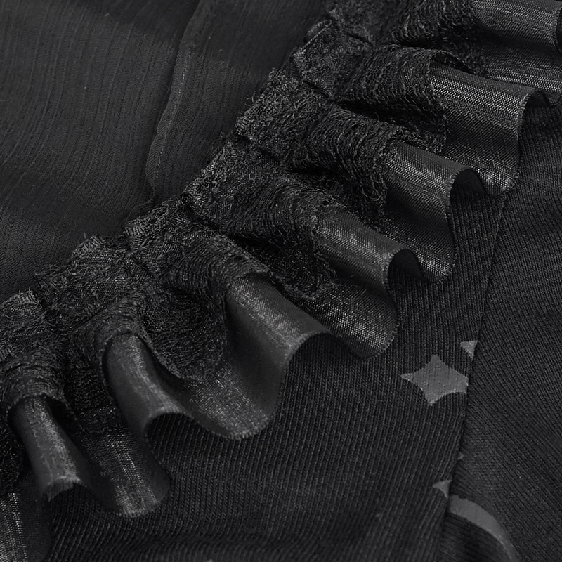 Gothic Black Cross Pattern Short Sleeves Blouse / Women's Turn Down Collar With Lace Trim Blouses