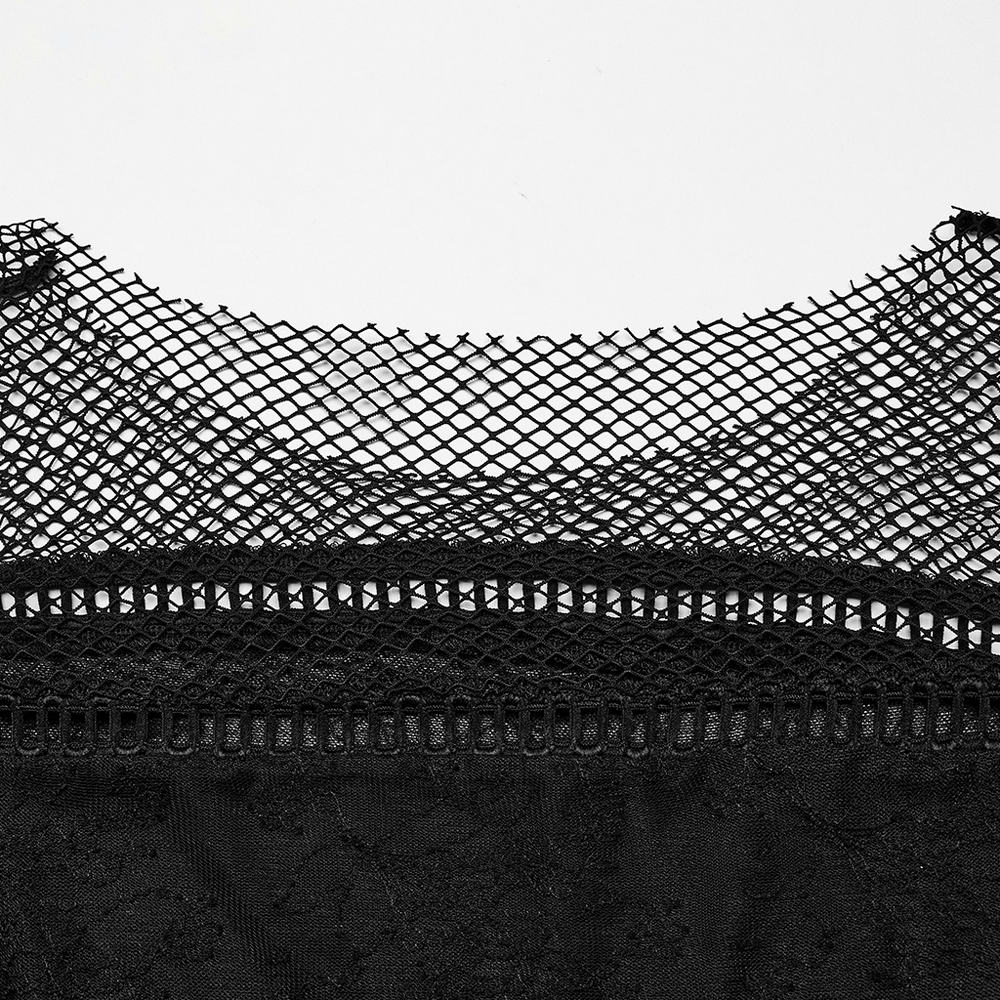 Gothic Black Lace Long Sleeve Top with Mesh Panels