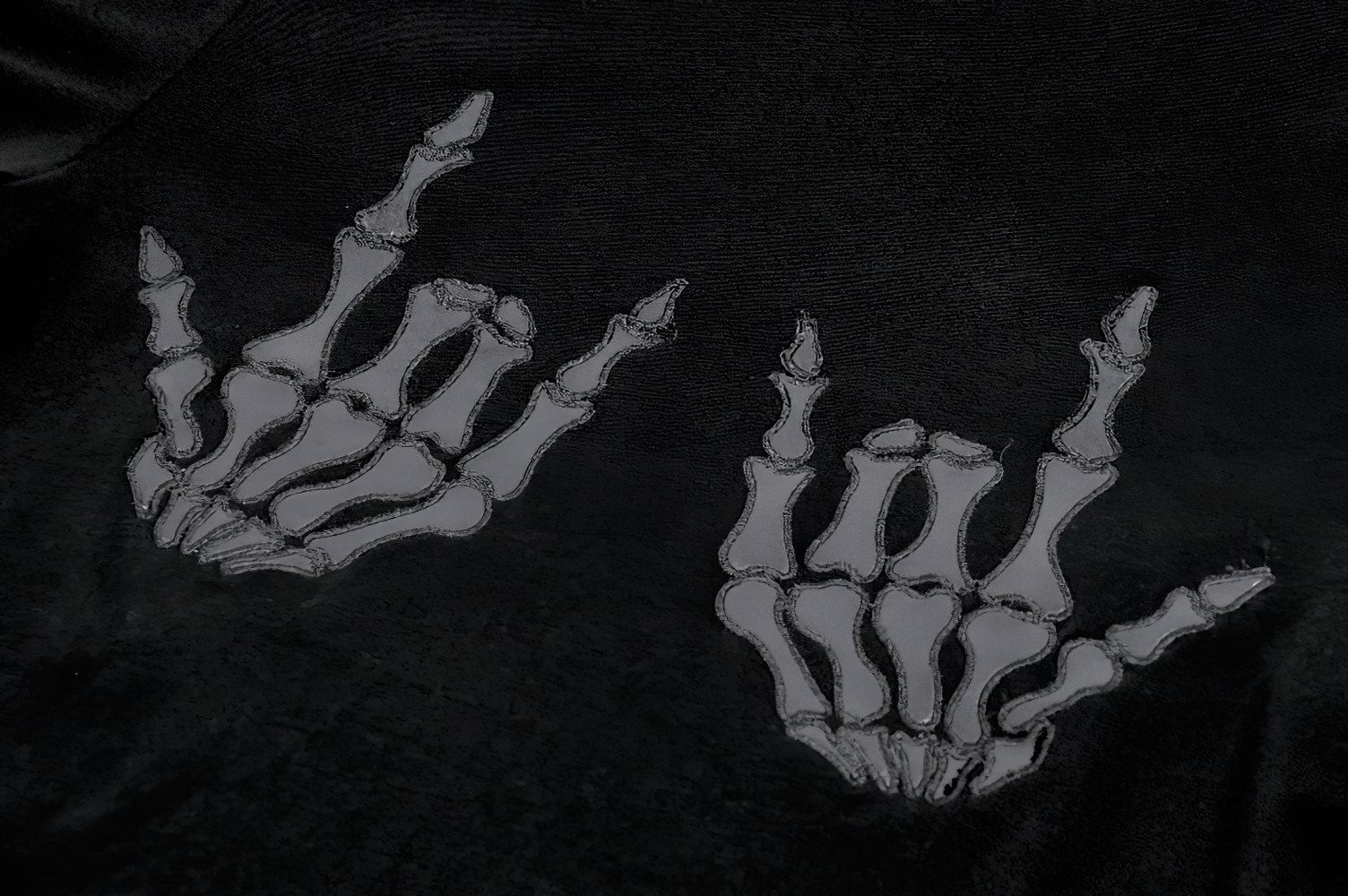 This gothic top features a bold skeleton hand print across the chest, making it a standout piece for alternative fashion lovers. Crafted with a sleek black finish and long sleeves, it pairs effortlessly with skirts, jeans, or layered outfits. The cropped cut adds a modern edge, while the unique skeletal design gives it a playful yet dark aesthetic perfect for gothic and punk styles.