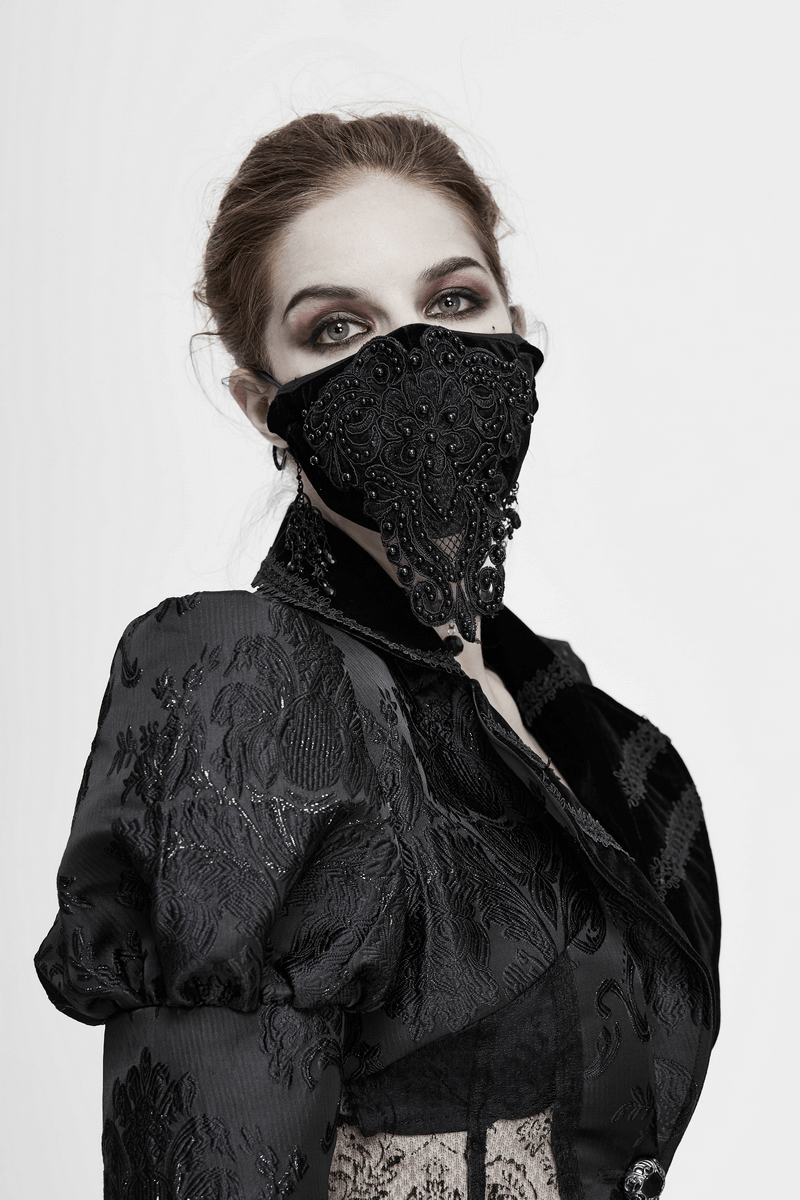 Gothic Black Velvet Face Mask / Women's Lace Applique Mask with Adjustable Straps
