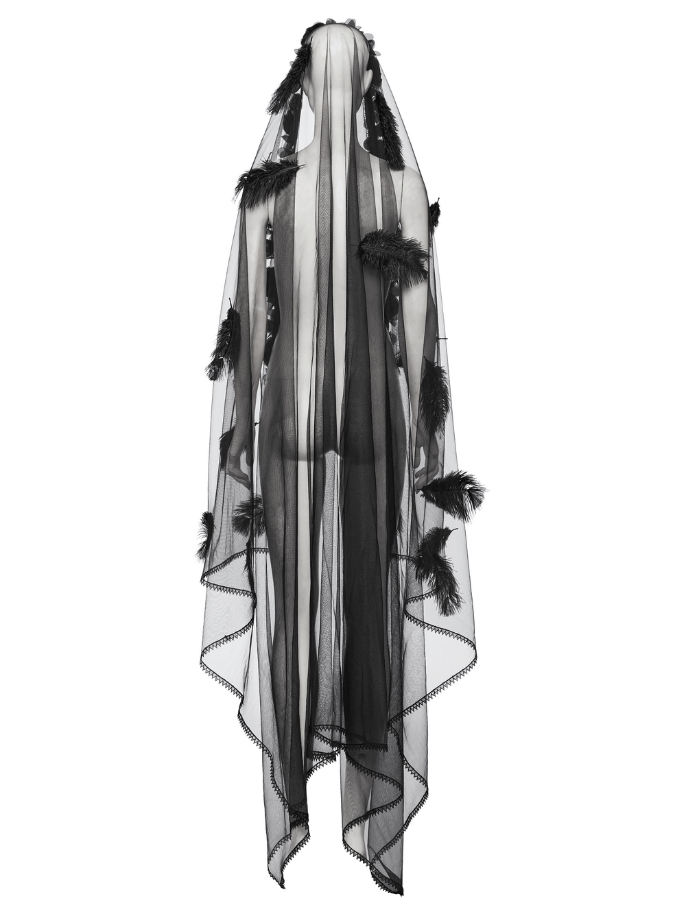 Dynamic Gothic Veil with 3D Roses and Feather Details.