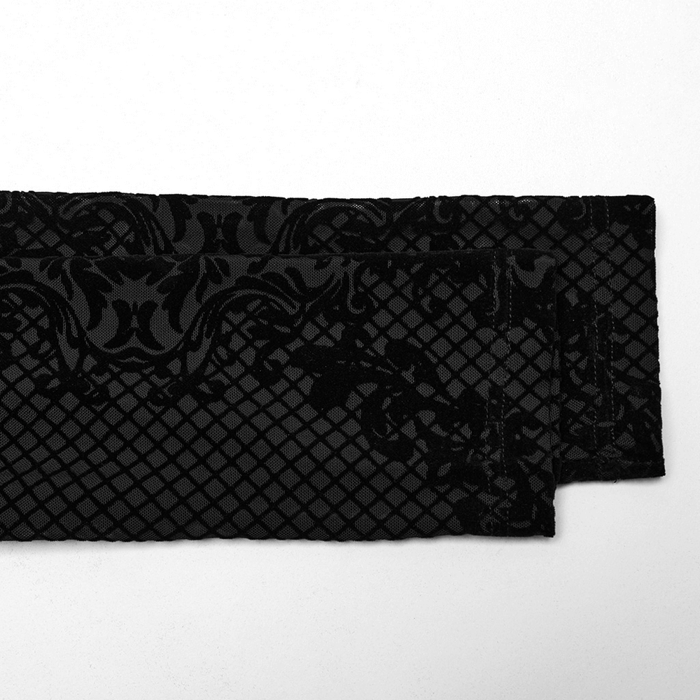 Gothic Flocked Mesh Long Sleeves High-Collar Top