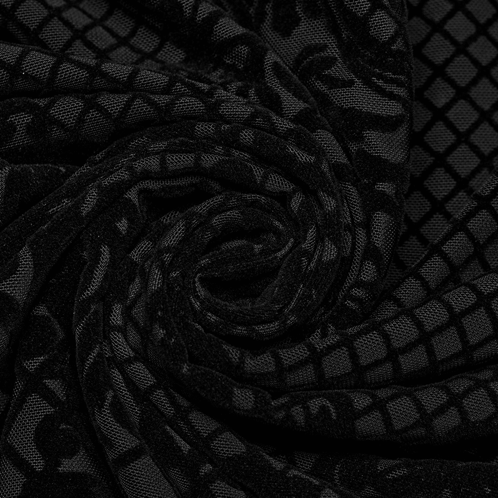 Unleash the essence of gothic elegance with this Victorian-inspired top, crafted from an elastic flocked mesh fabric that contours gracefully. The intricate custom-printed pattern exudes Gothic mystery, making it an ideal statement piece for any dark wardrobe. Designed as a simple one-piece with a sophisticated stand collar, this top seamlessly blends historical charm with a modern edge. Perfect for those who dare to stand out, it’s an essential addition to your unique style ensemble.