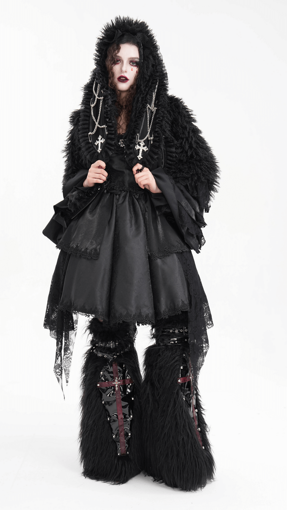 Gothic Furry Leg Warmers with Cross Details and Studs