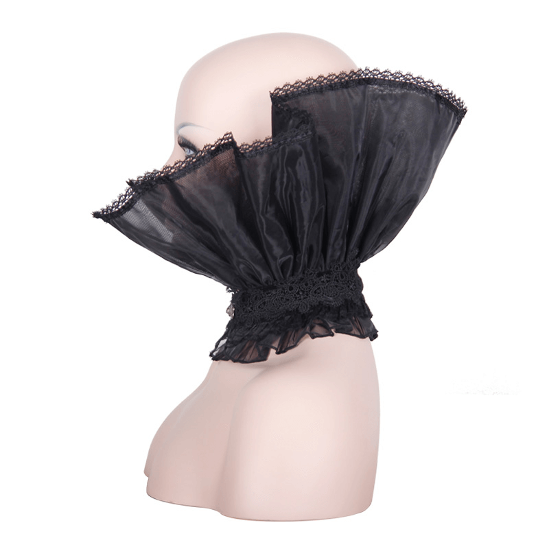 Gothic Lace High Collar for Women / Black Vintage Frilled Ruff Collar