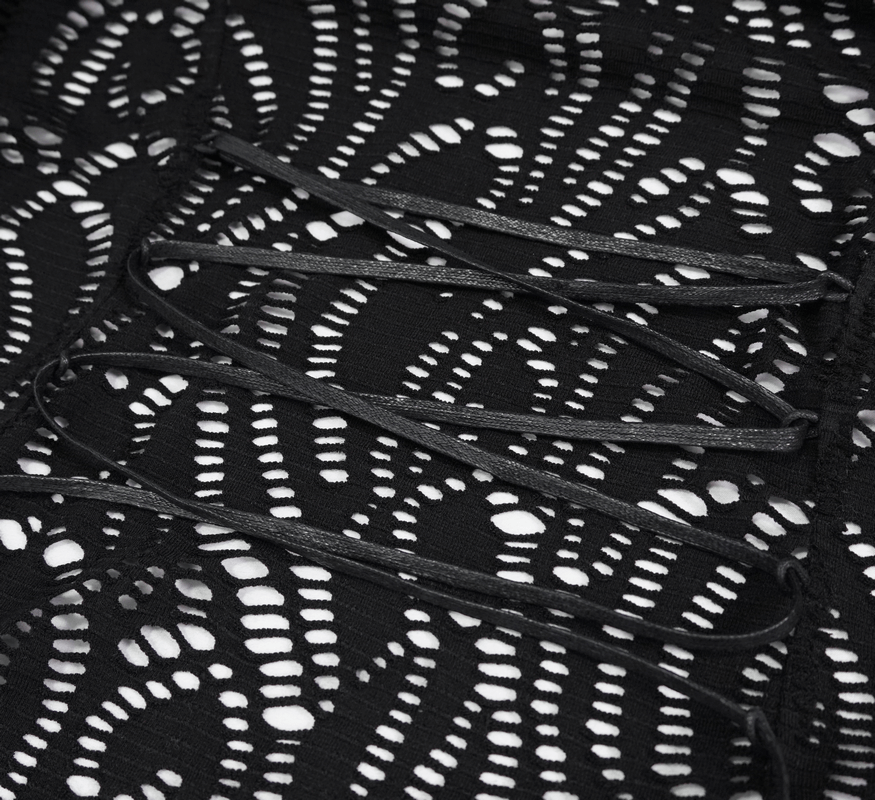Gothic Lace-up Black Crochet Coat with Hood / Long Trench Coat For Men