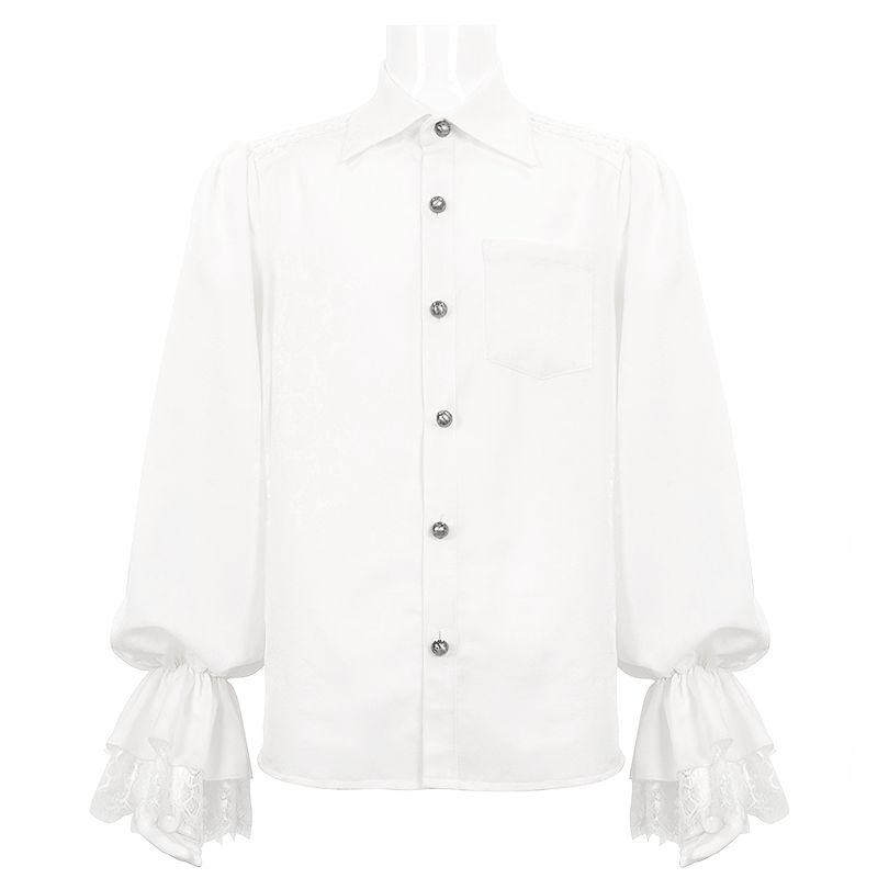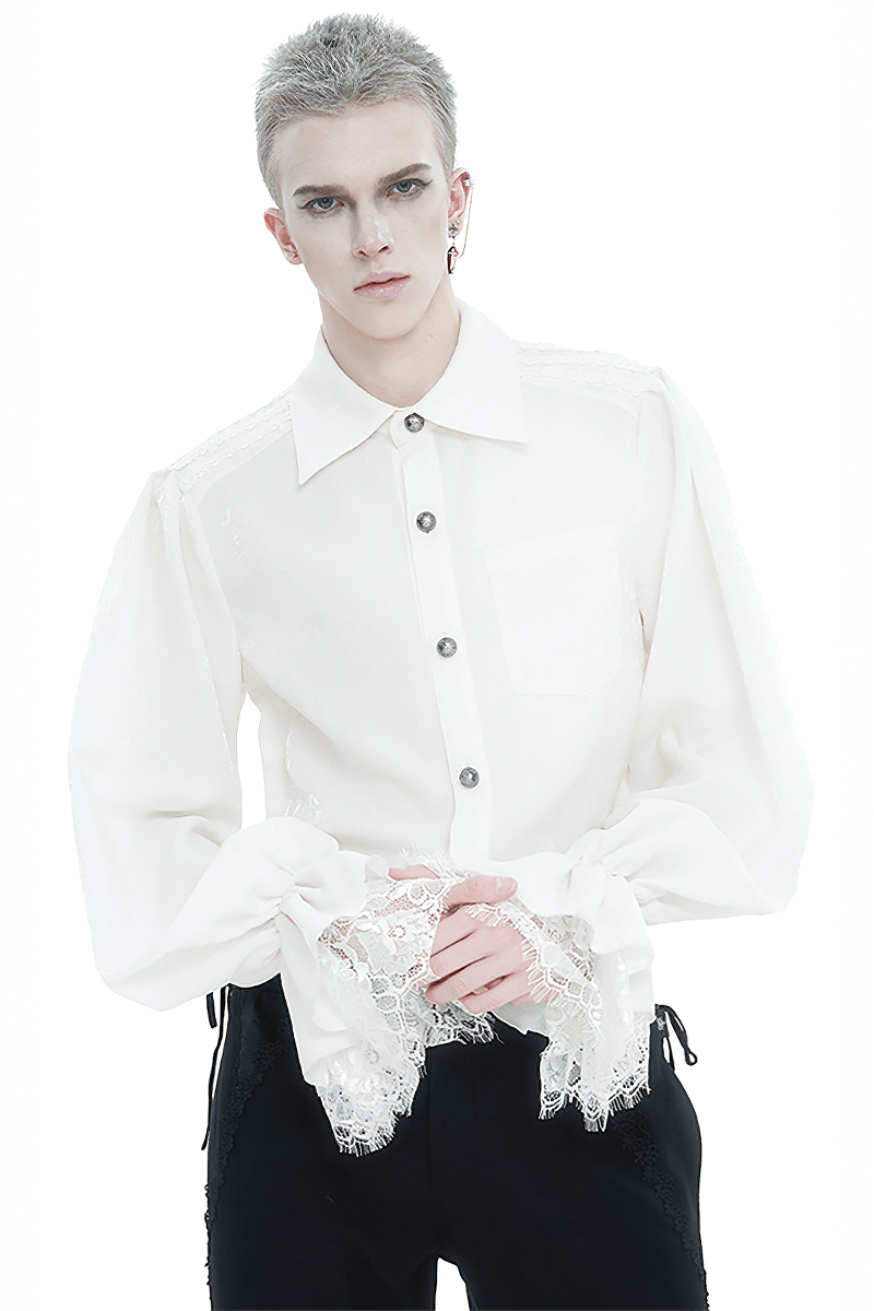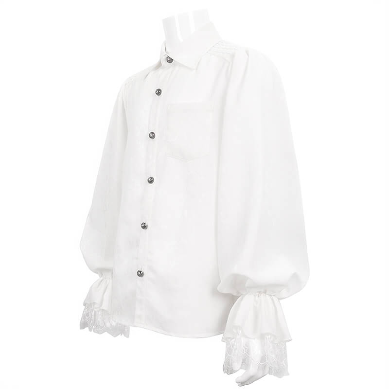 Gothic Men's Turn-Down Collar Shirt with Puff Sleeves / Vintage Male Floral Embossing Shirts