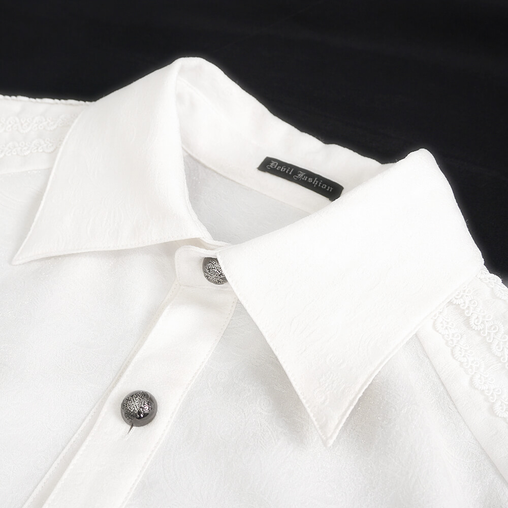 Revive the romance of gothic style with our men's turn-down collar shirt featuring puff sleeves. This vintage cloth is a striking blend of traditional and alternative aesthetics. The shirt boasts a dramatic turn-down collar and voluminous sleeves, set off by intricate floral embossing. Exude a daring, unforgettable presence and own your uniqueness with this stunning addition to your alternative wardrobe.