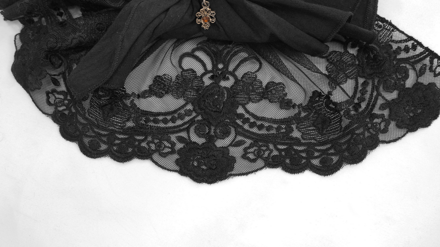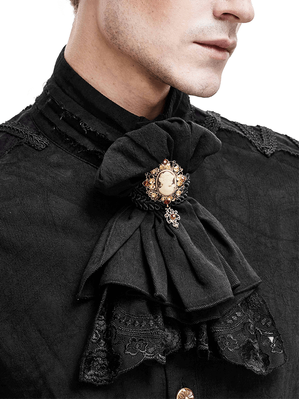 Gothic Noir Dentelle Cravate Jabot for Men / Vintage Male Ties with Brooch / Alternative Style