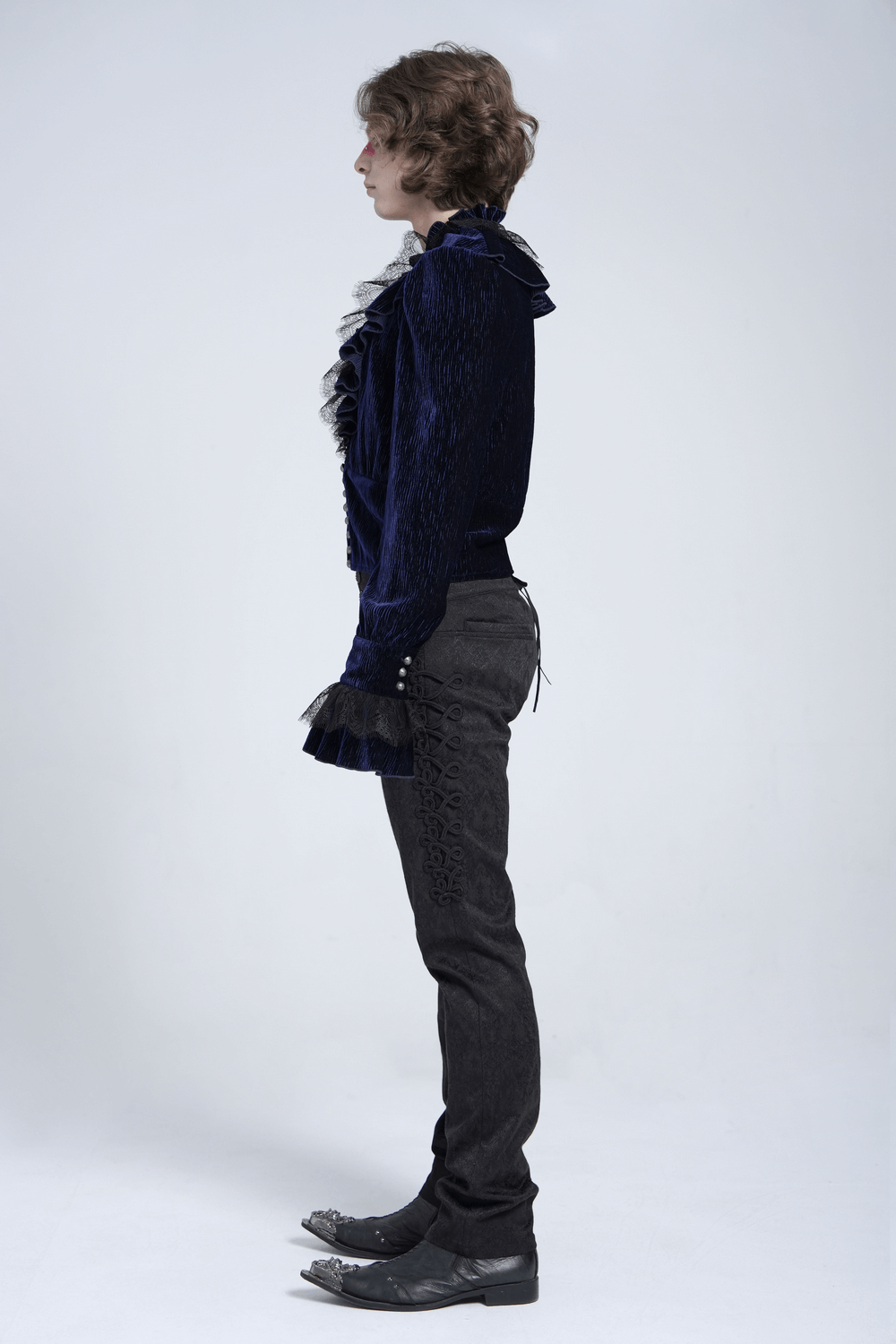 Gothic Ruffled Velvet Shirt with Lace and Pearls