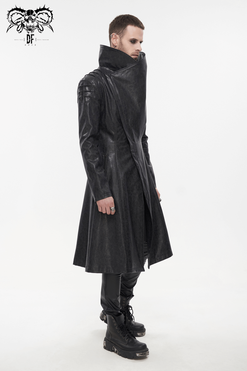 Gothic Stand Collar Long Coat for Men / Shoulders Strap Faux Leather Coat in Punk Style