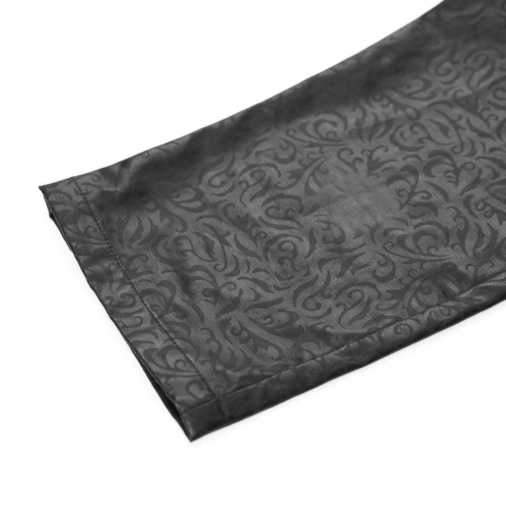 Crafted from 100% synthetic leather, these gothic-inspired slim-fit pants offer a sleek and edgy style. The adjustable double-buckle waistband adds a unique touch, while the intricate embossed pattern elevates the overall design. These pants are inelastic and soft, perfect for punk rock and gothic fashion enthusiasts, providing a stylish fit for any alternative wardrobe.