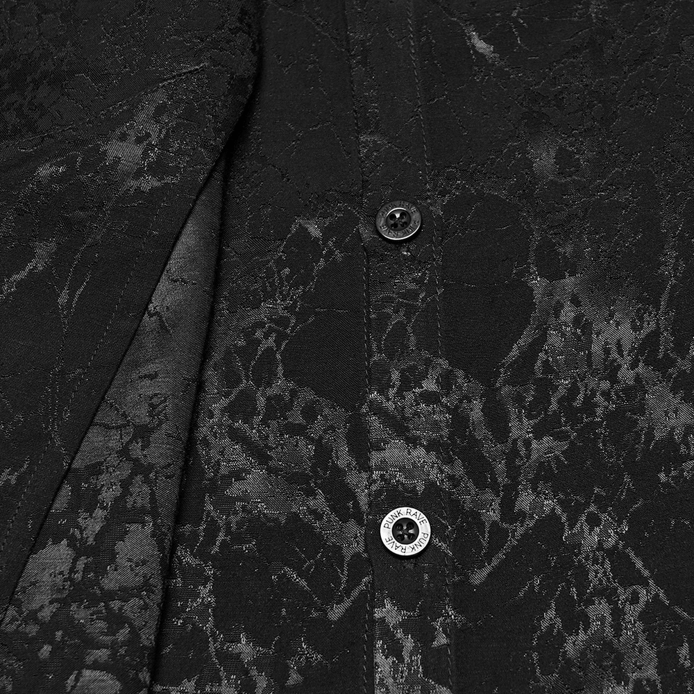 Goth Irregular Placket Shirt with Mottled Woven Texture.