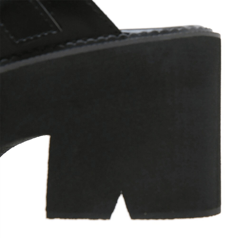 Women's Black PU Leather Platform Sandals With Buckles - Trendy Casual Shoes.