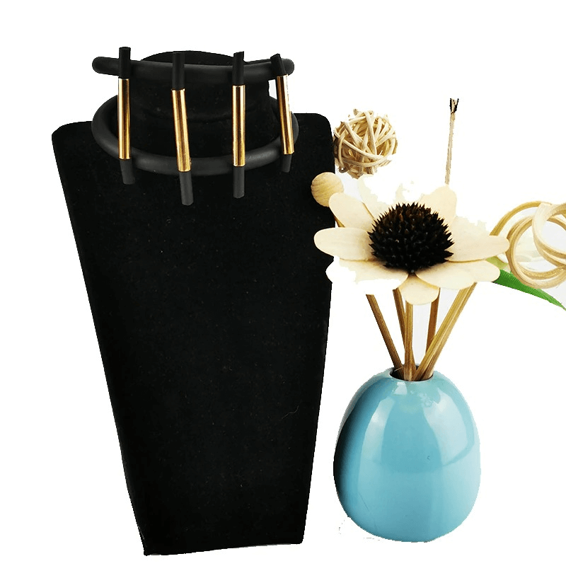 Luxury Black Color Charm Bracelets with Magnetic Clasp / Punk Style Rubber Wide Bracelets