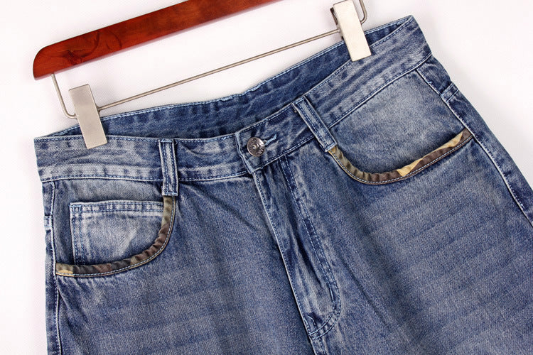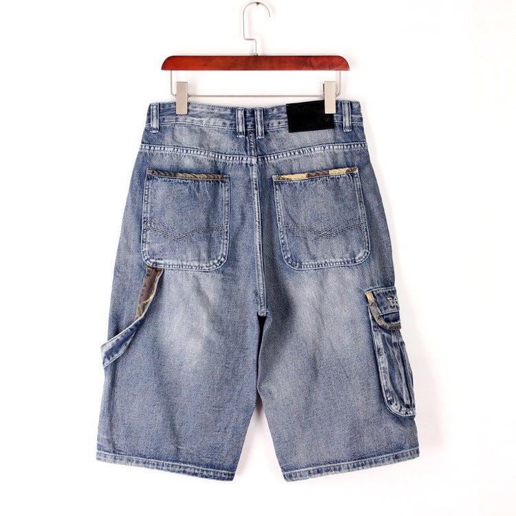 Men's Loose Denim Cargo Shorts With Pockets.