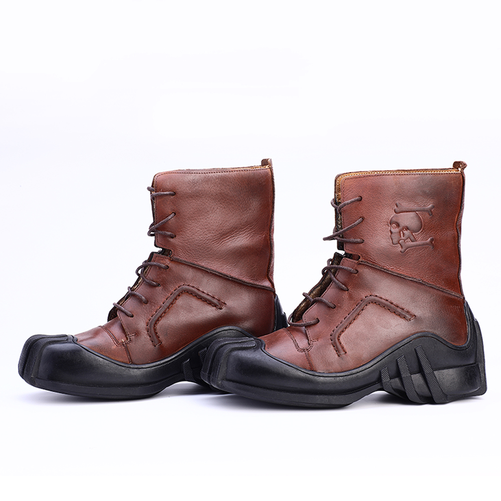Men's Genuine Leather Lace-up Ankle Boots / Bikers Motorcycle Shoes with Skull Print