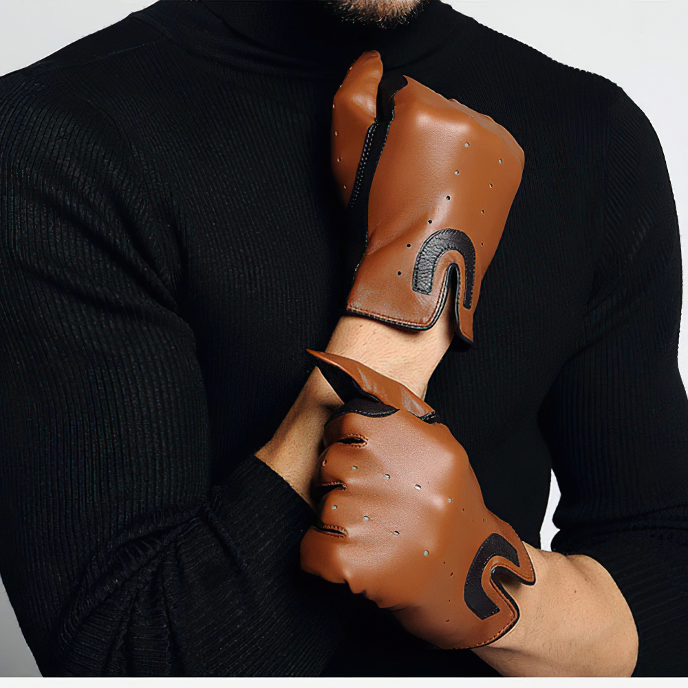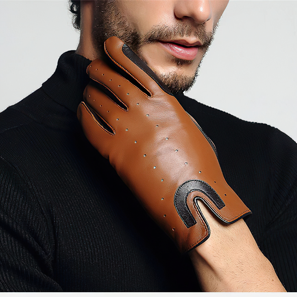 Take a look at this model of modern men's gloves in a fashionable style. These brown gloves are made of quality leather and have breathable materials that will allow your skin to breathe. They are an ideal choice for horseback riding. So order and complete your elegant outfits with them.
