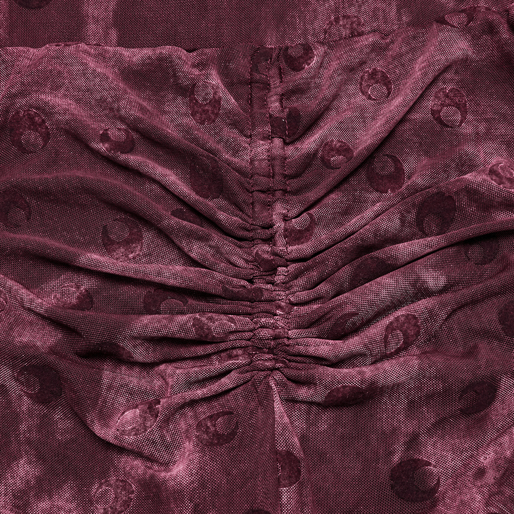 These flared pants are crafted from elastic moon-printed mesh and soft knitted fabric, offering a bold and sexy look. Featuring a tight fit with a built-in base and a front crotch pleat design, they’re perfect for making a statement. The waist strap adds extra flair, while the crescent embroidery complements the fabric, bringing a unique gothic touch to your wardrobe.