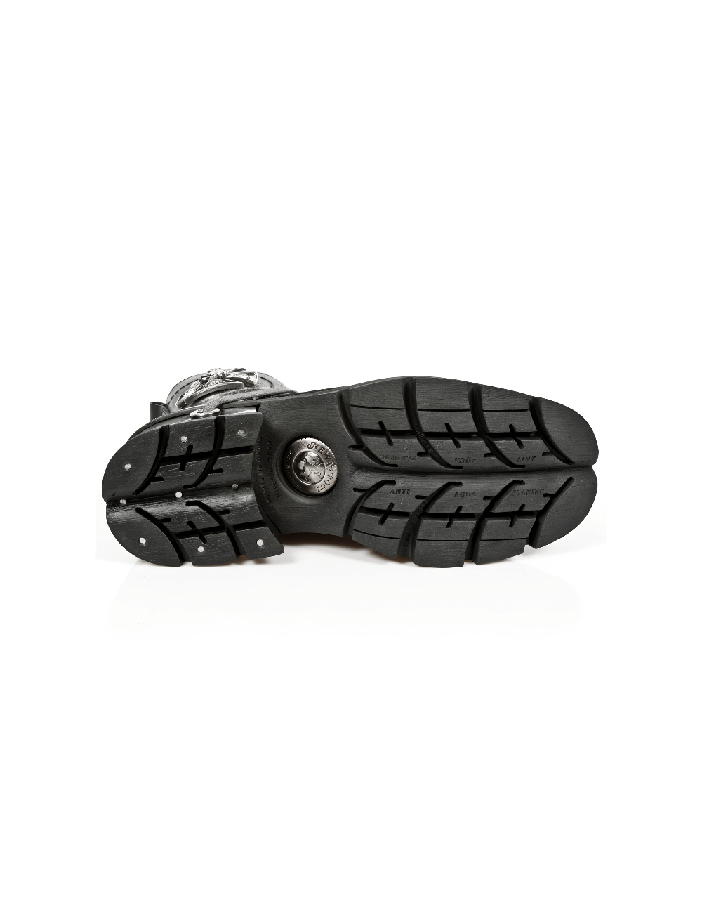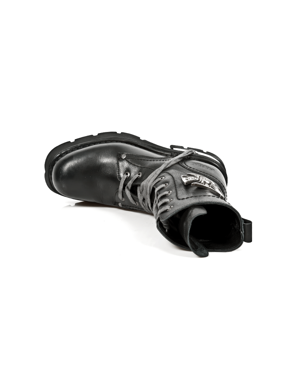 NEW ROCK Men's Metal Skull Lace-Up Leather Ankle Boot