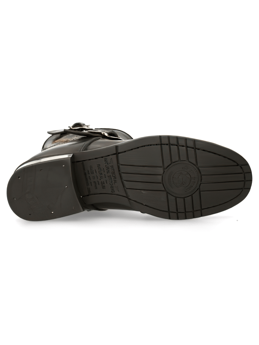 NEW ROCK Rugged Black Buckled Biker Boots for Men