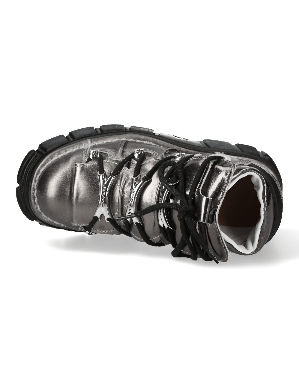 Embrace the fusion of punk and goth with our Silver boots. These ankle boots are crafted from synthetic cow leather and shine in a striking silver. Featuring a rock-inspired design with metal accents for an edgy look, they include a flat heel, lace-up closure, and a calfskin inner. The boots are built with a durable PU-ultra sole, ensuring a bold statement in any ensemble. Heel height: 8 cm, platform: 6 cm, shaft: 11 cm.