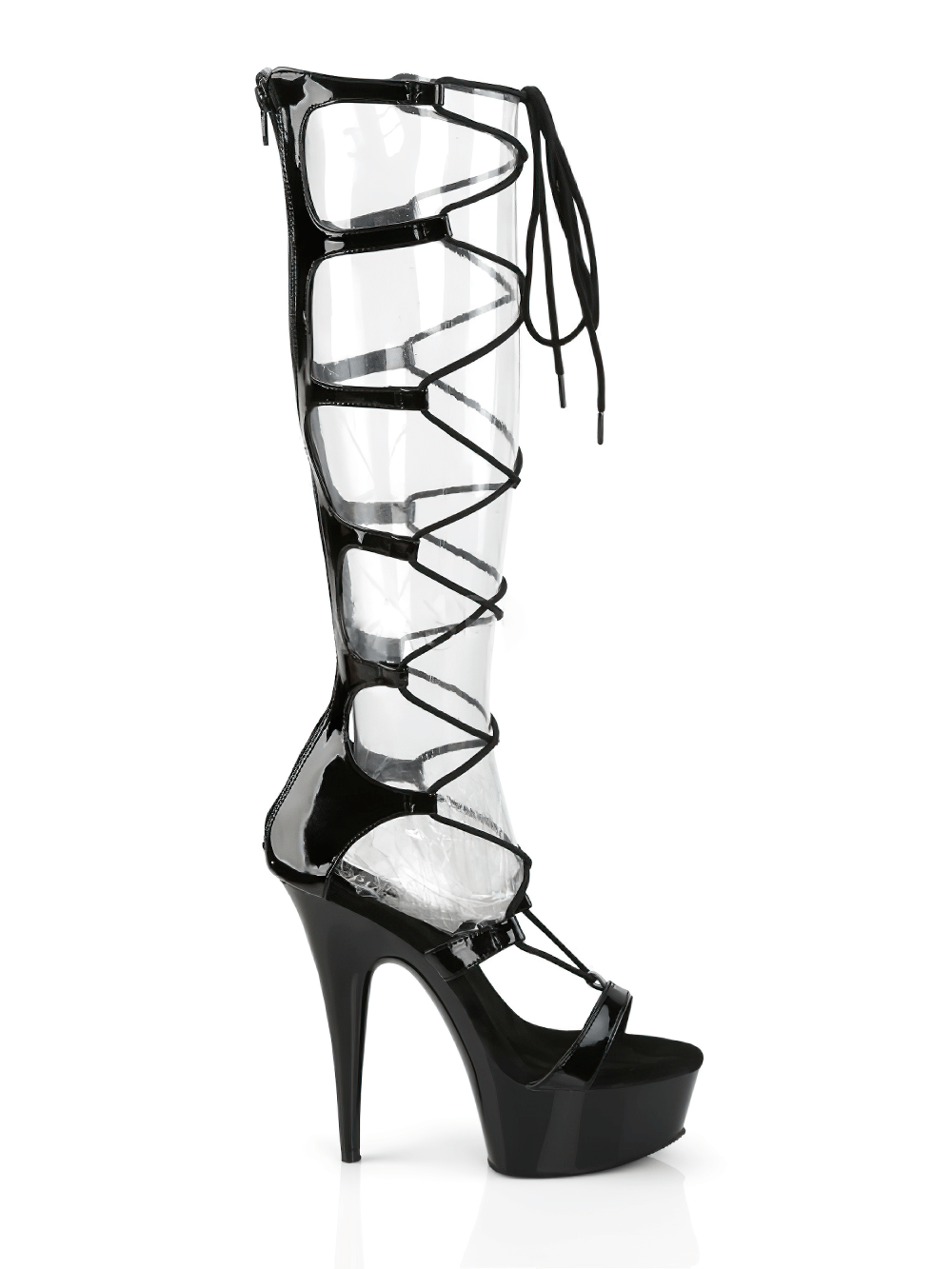 PLEASER Lace-Up Stiletto Heels Open Toe Black Bootie Sandals