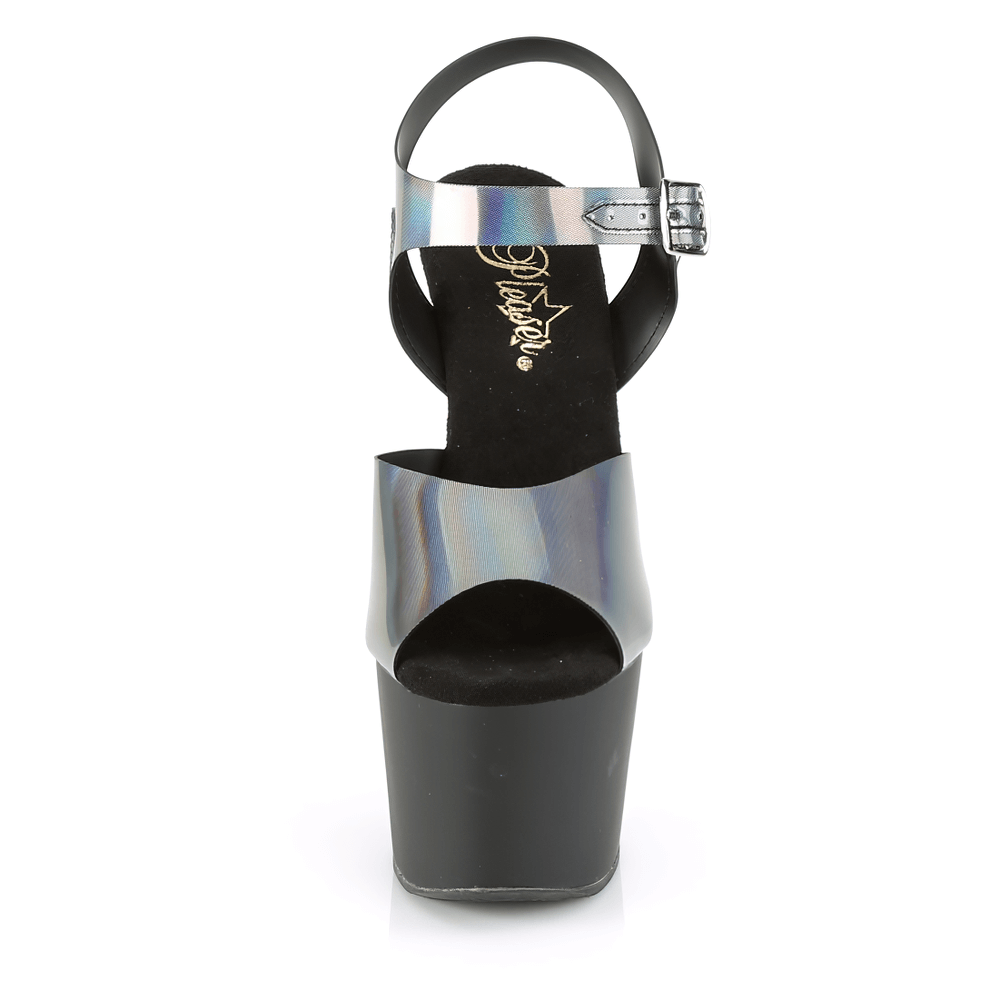 PLEASER Platform Heels with Holographic Ankle Strap Sandals