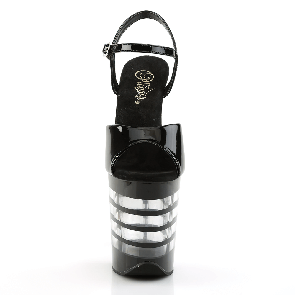 Step into elegance with the Ankle Strap Platform Heels Sandals, featuring a towering 8-inch stiletto heel and a 4-inch lined platform for a dramatic lift. These ankle strap sandals blend classic style with modern design, offering a sleek black finish that pairs seamlessly with any outfit. Ideal for performers and style enthusiasts, these sandals ensure you stand out at any event. Embrace a look that elevates your style and stature, perfect for those who love to make a lasting impression.