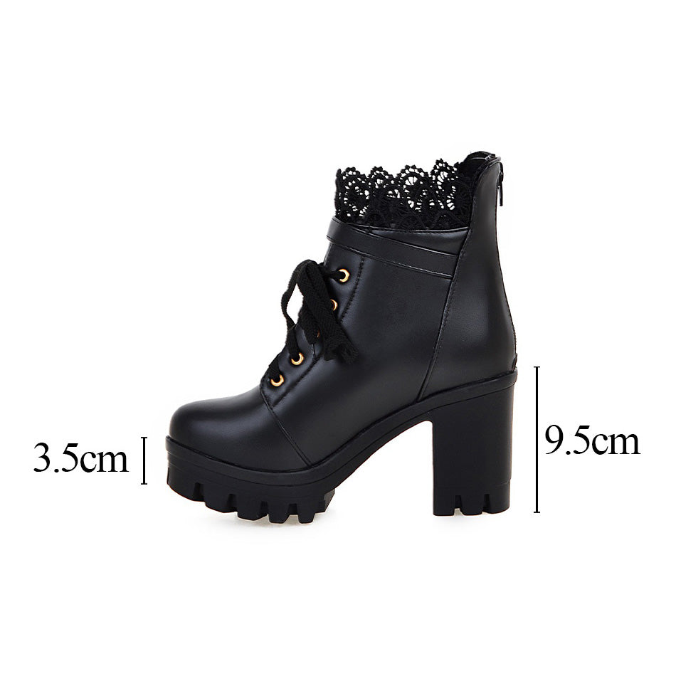 Pu Leather Warm Winter Women's Boots / Lace-Up Shoes for Women in Gothic Style