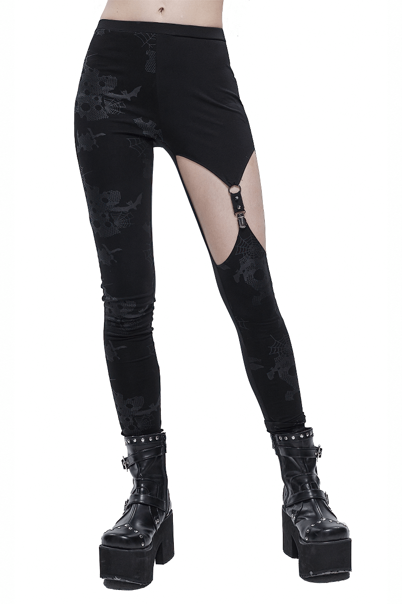 You will be interested in our new model of women's leggings in punk style. These black leggings have a fitting asymmetrical cut that will emphasize your figure and style as best as possible, and they also have a print that will capture your attention. These black leggings will be the perfect addition to your punk wardrobe.