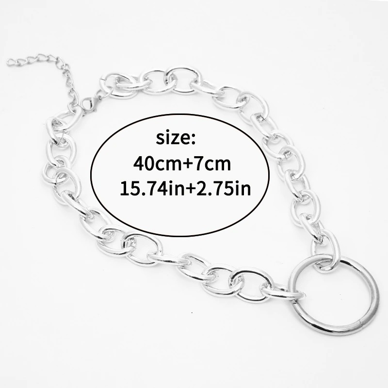 Chain Choker Necklace With Circle - Punk Style.