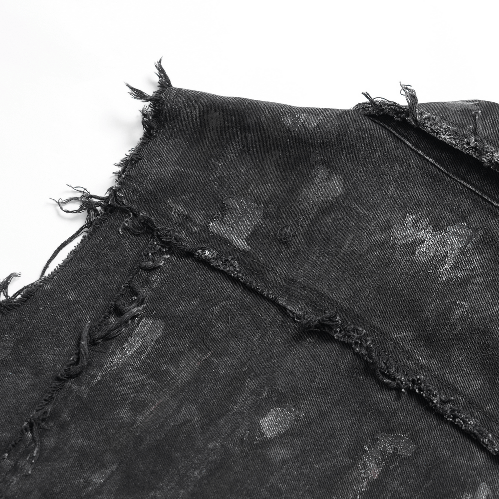 This black gothic denim shirt is a true statement piece, featuring dramatic lace-up sides, silver studded detailing, and rugged frayed edges. Perfect for alternative fashion lovers, it blends punk and gothic aesthetics with a modern edge. Pair with your favorite jeans, skirts, or shorts for a bold look that stands out in any crowd.