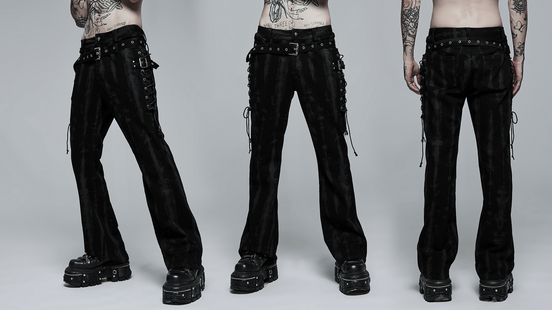 Punk Daily Wear Dark Texture Flare Trousers with Side Drawstrings