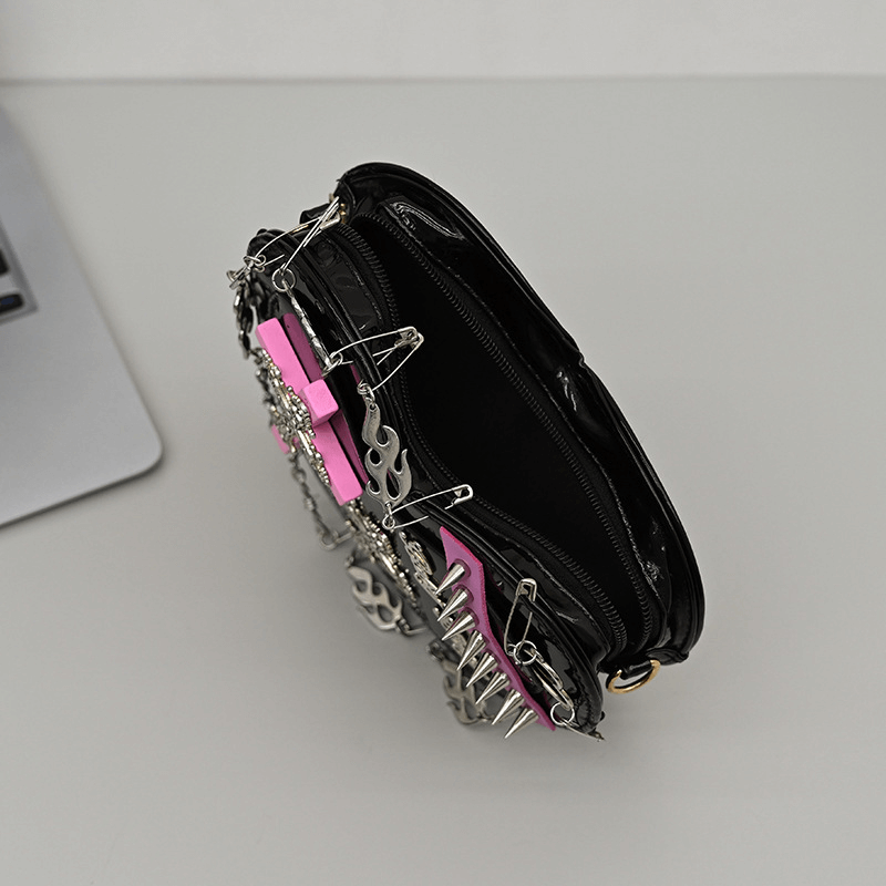 Elevate your alternative look with our punk heart shape bag adorned with crosses. This women's shoulder bag seamlessly merges punk style with a fashionable edge. Featuring striking rivets and a distinct heart silhouette, it’s not just a bag it’s a statement. Perfect for the fierce fashionista eager to make her mark on the world.