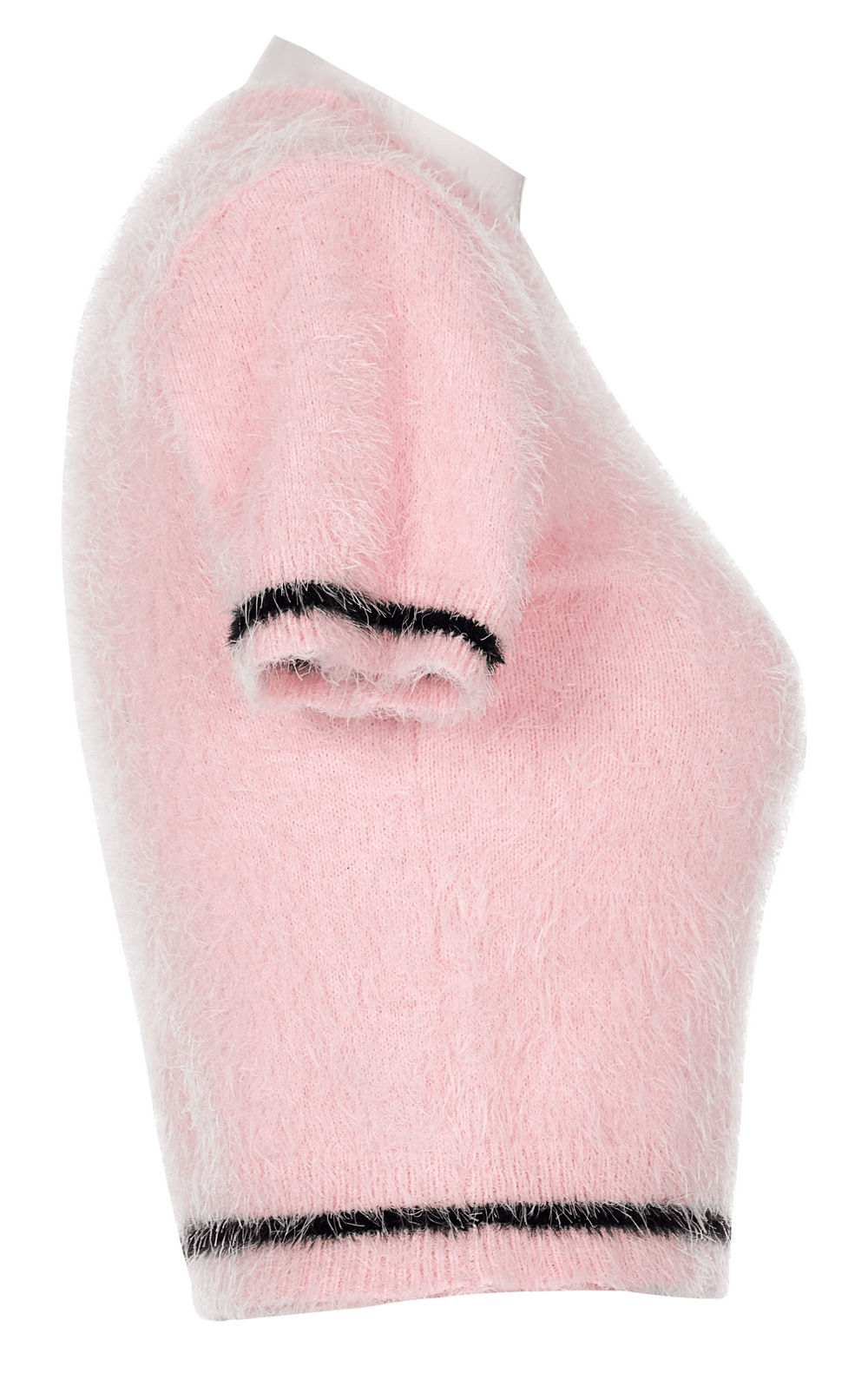 Punk Rave Pink Faux Fur Crop Sweater Cherry Skull Embroidery