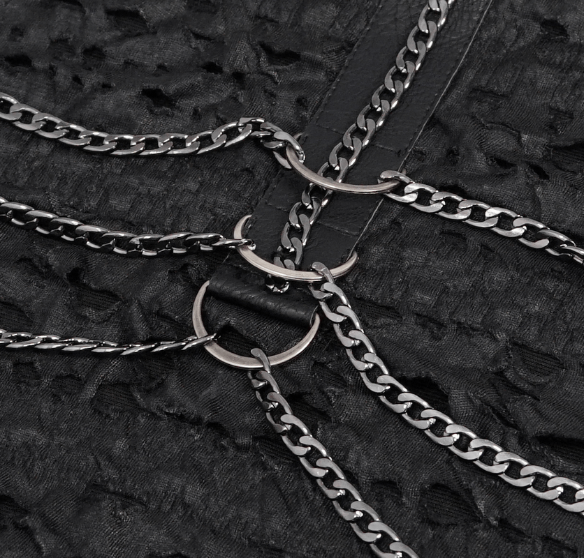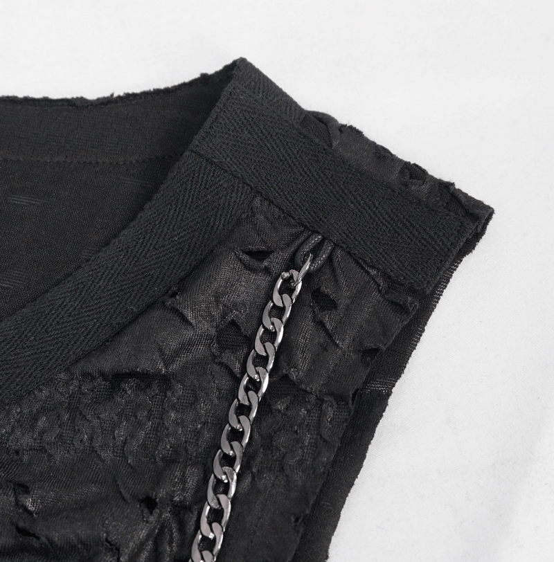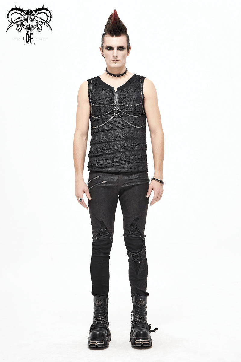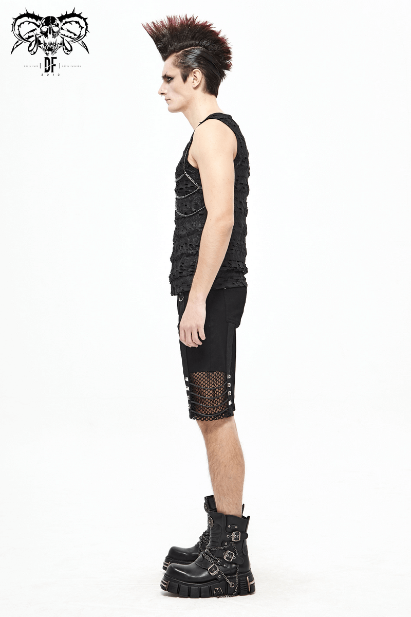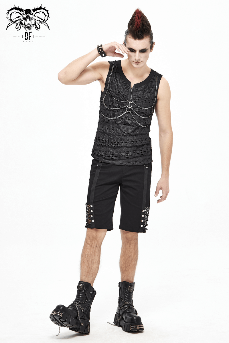 Punk Rock Chain Sleeveless Tank Tops / Black Men's Top with Broken Holes