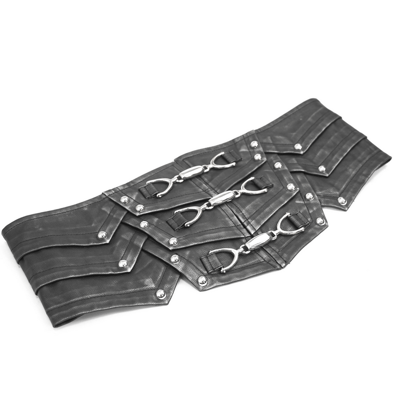 Punk Style Black PU Leather Belt with Metal Buckle / Vintage Wide Waistband For Men